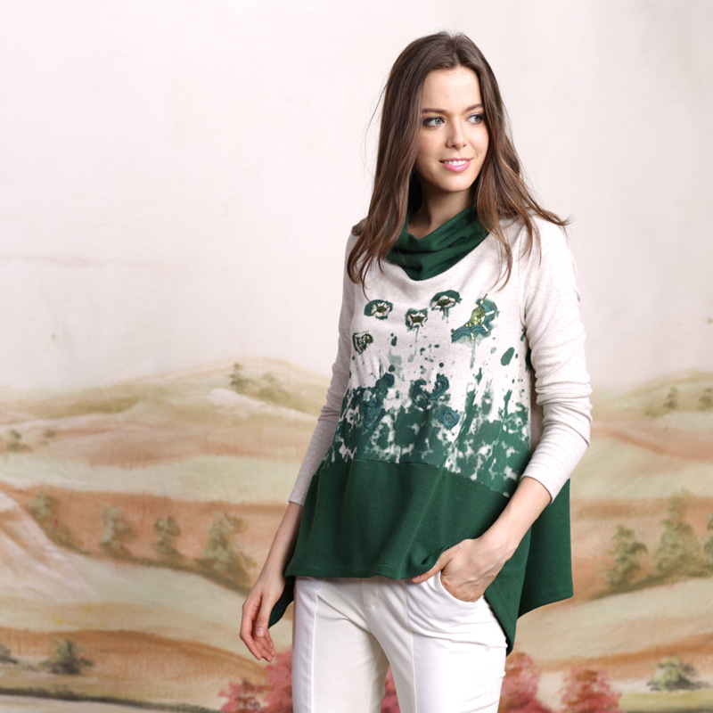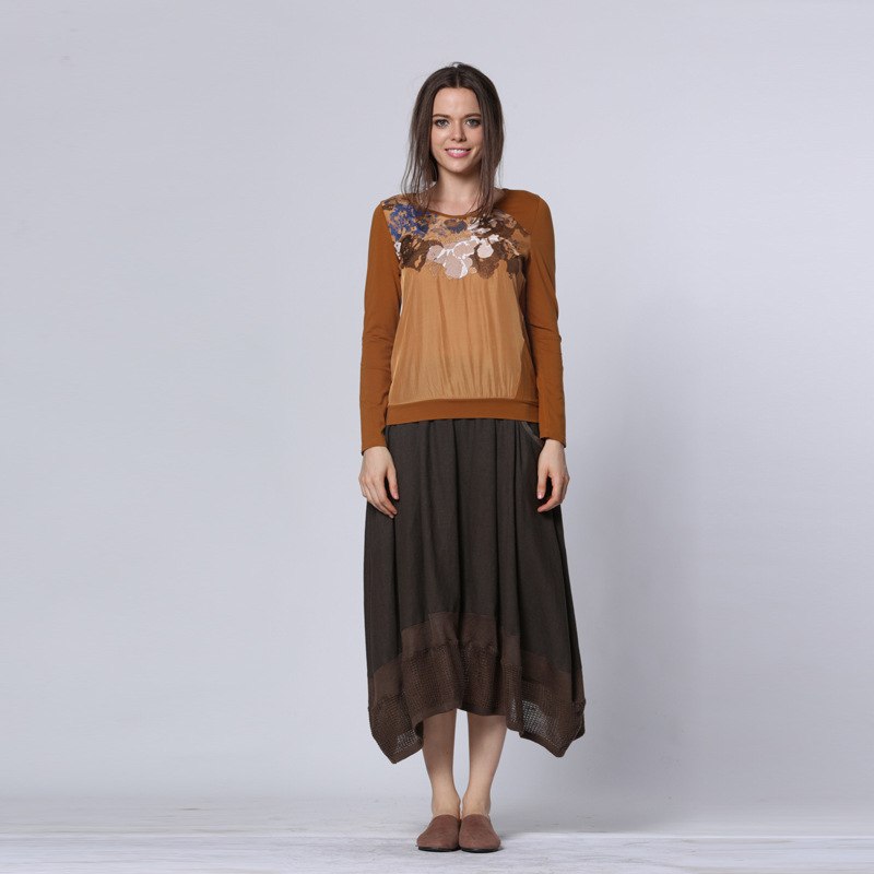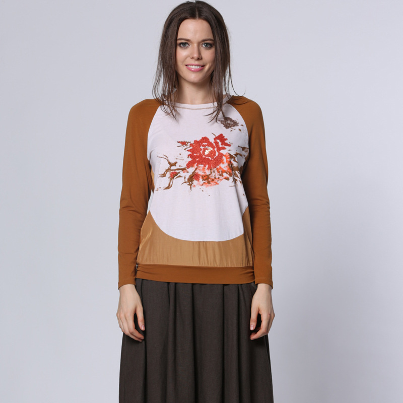 繡花工藝麗比多棉帛坊 長袖時尚休閑棉麻女裝裝套頭修身針織衫女 /