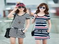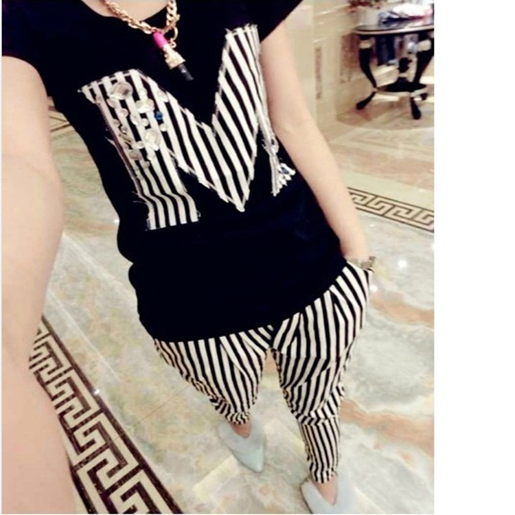 休閑套裝夏季女裝2015條紋短袖T恤新款兩件套學(xué)生運(yùn)動(dòng)套裝女夏 /
