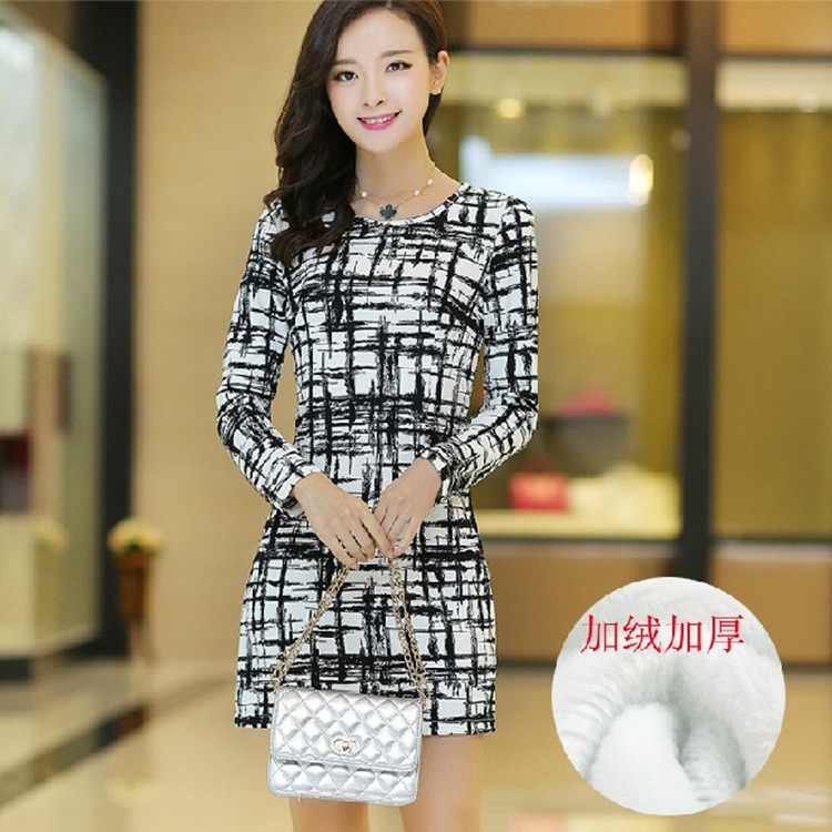 2015秋冬新款連衣裙長(zhǎng)袖 韓版拼色顯瘦大碼女裝加絨秋冬連衣裙 /