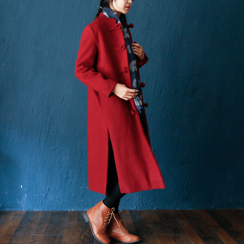 2015冬季新款復古風純色立領盤扣毛呢兩色風衣外套長款呢子大衣 /