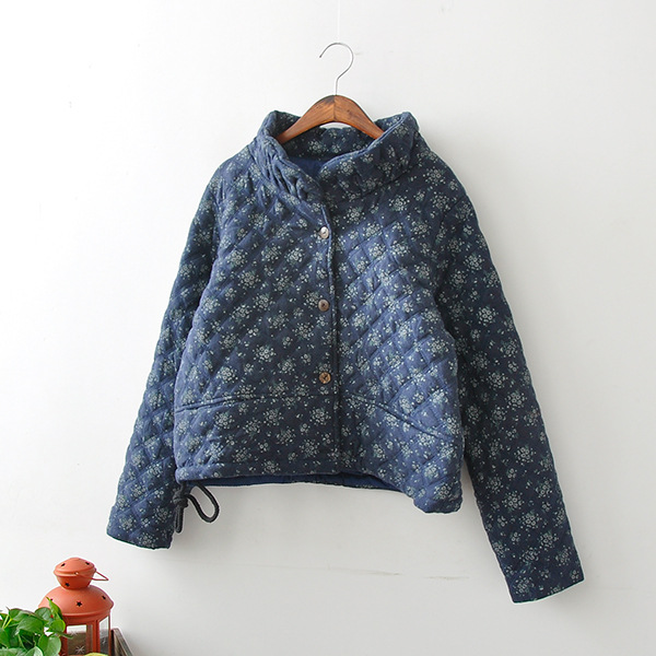 文藝范復古短款薄棉衣外套印花民族風小棉襖中國風印花棉服秋冬女 /