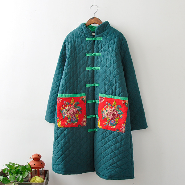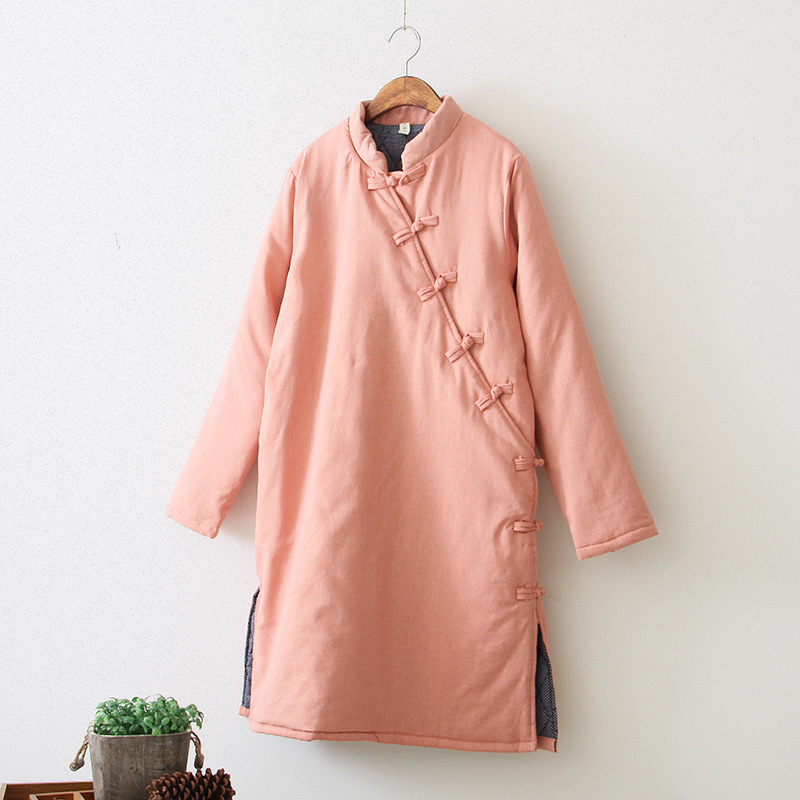 秋冬文藝民族風立領斜襟盤扣棉衣中長款棉襖外套中式女裝 /