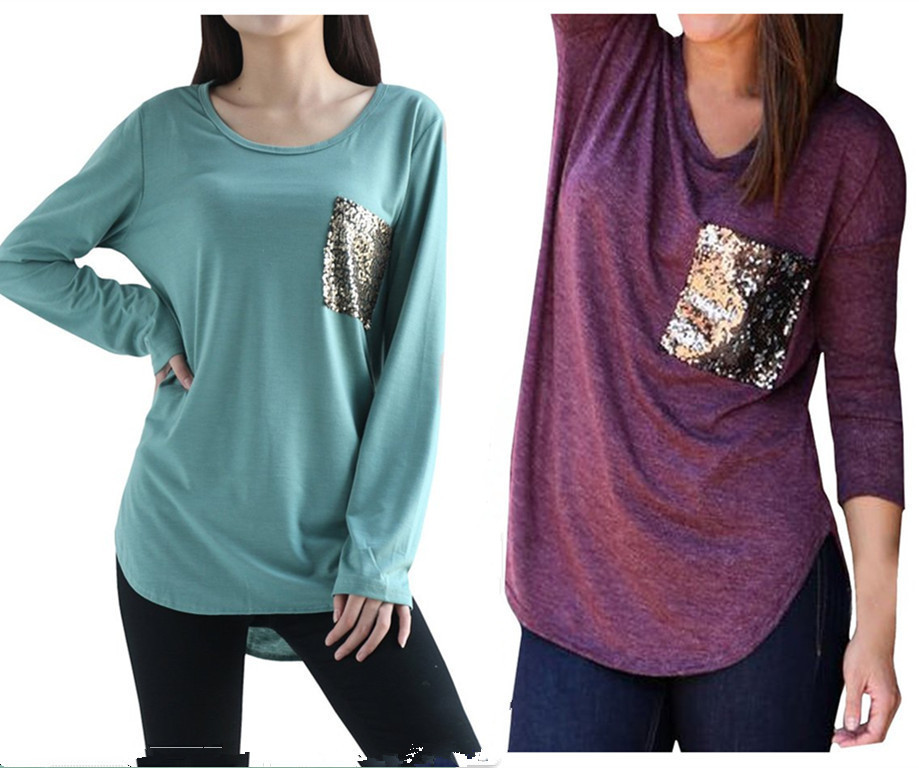 ebay速賣通新款長袖T恤女裝外貿原單亮片裝飾上衣 歐美爆款 /