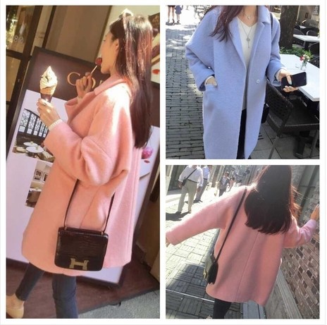 秋冬新品 韓版氣質中長款廓形毛呢外套寬松顯瘦純色大衣女士學生 /