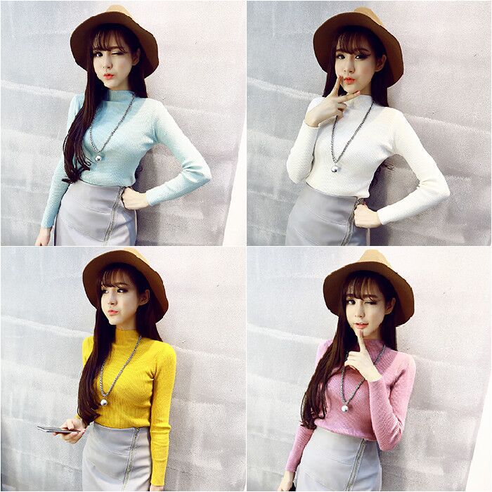 新品女韓版百搭半高領長袖打底毛衣一體式學生針織衫t恤 /