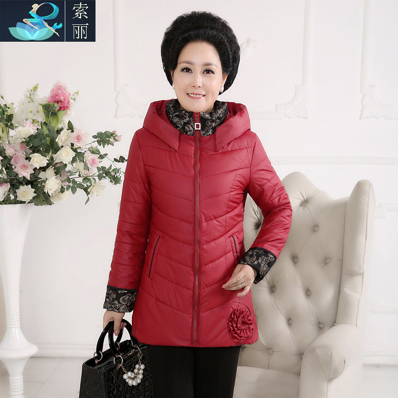 冬裝新款媽媽裝加厚加絨棉襖中老年大碼女裝連帽拼接棉衣女式棉服 /
