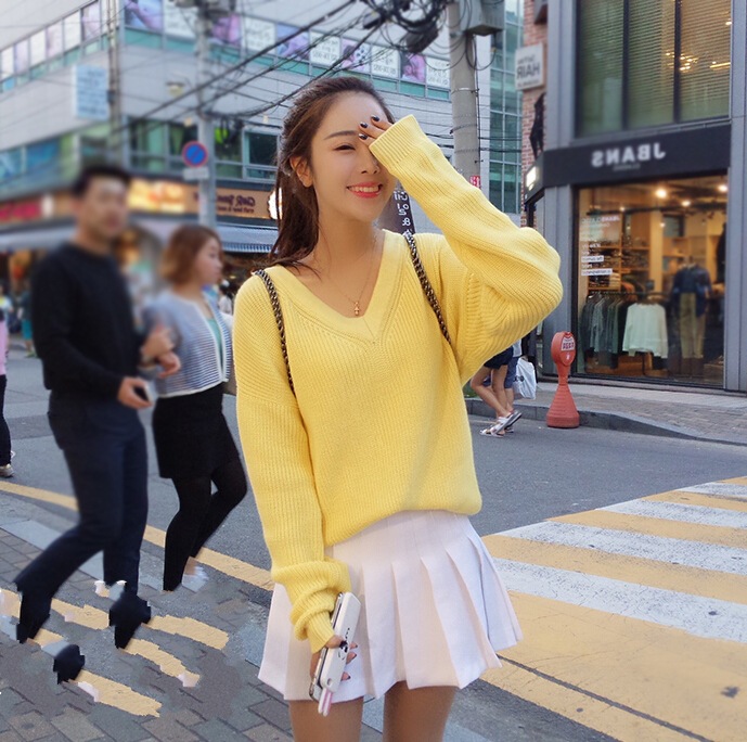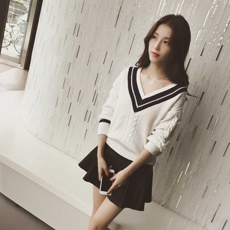 毛衣女V領學院風冬季外套寬松學生套頭線衣加厚針織衫打底衫女裝 /