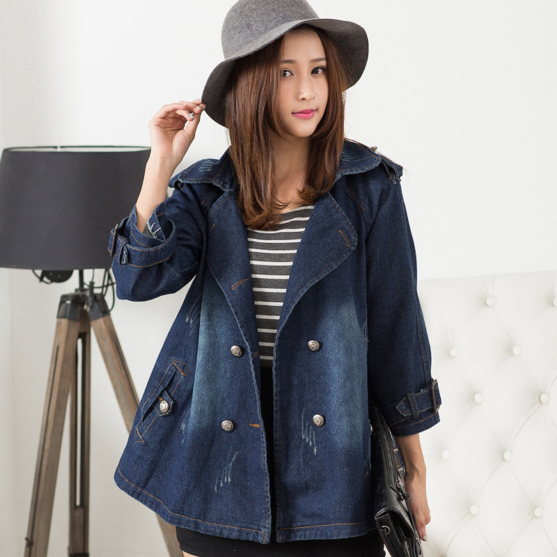 歐洲站2015秋裝新款韓版長袖寬松短外套氣質休閑牛仔風衣女 /