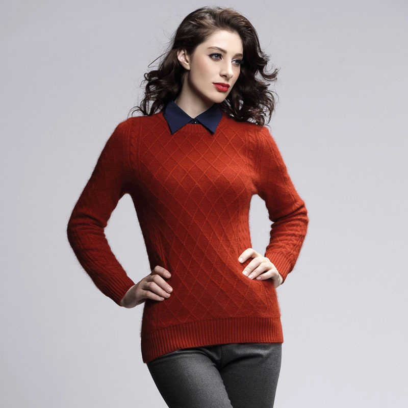 2014秋冬新款女士圓領麻花加厚修身短款羊絨衫 /