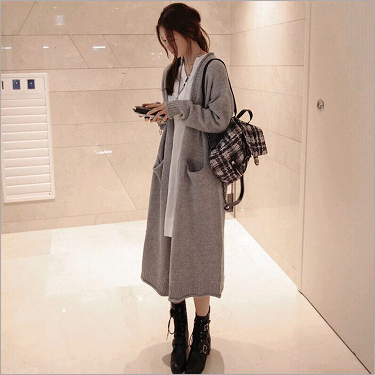 韓國東大門秋冬新款韓版超長加厚大碼寬松毛衣外套女裝開衫針織女 /