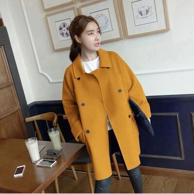 2015秋冬雙排扣寬松毛呢外套中長(zhǎng)款加厚韓大碼繭型呢子大衣 /