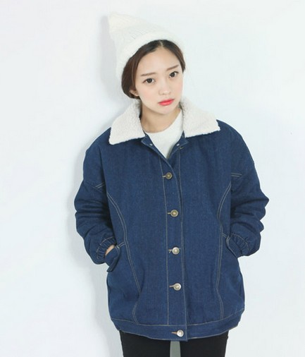 冬 韓版 寬松 帥氣BF風寬松工裝外套羊羔毛小翻領牛仔棉衣女 /