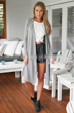 速賣通熱賣爆款 2015歐美秋季新品長袖翻領薄款中長開衫 /