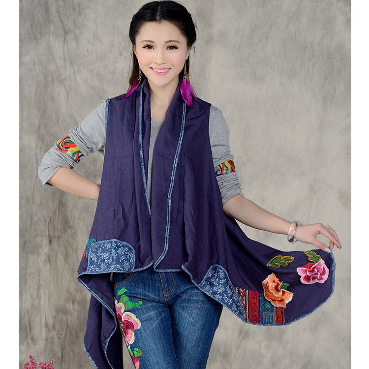 2015設計師品牌新款女裝春秋棉麻刺繡背心大碼披肩民族風 /