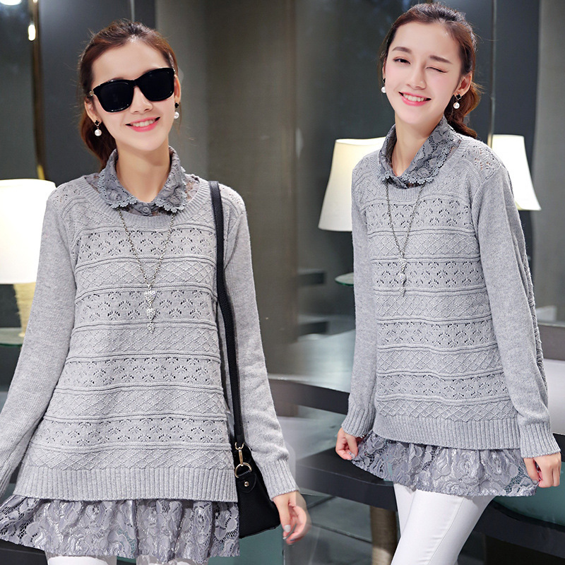 2015秋冬新款針織韓版寬松蕾絲兩件套打底衫毛衣女(實拍) /