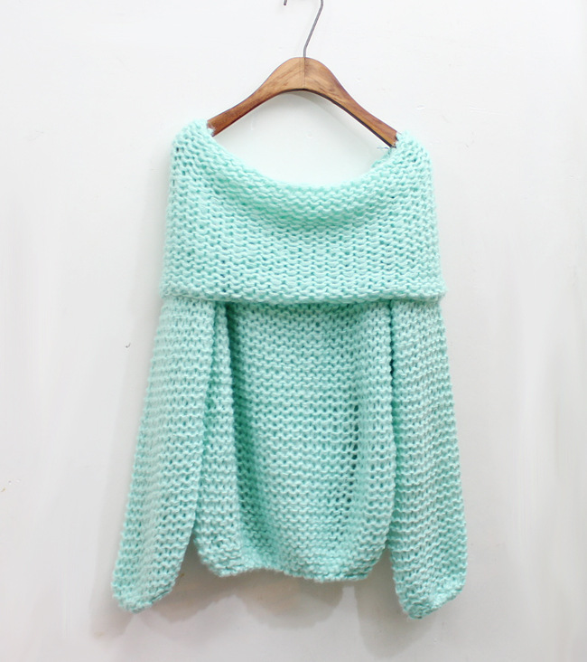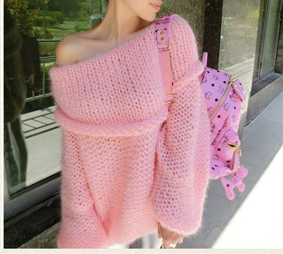 2015秋季冬季新款露肩一字領純色毛衣女寬松套頭馬海毛毛衣批發 /