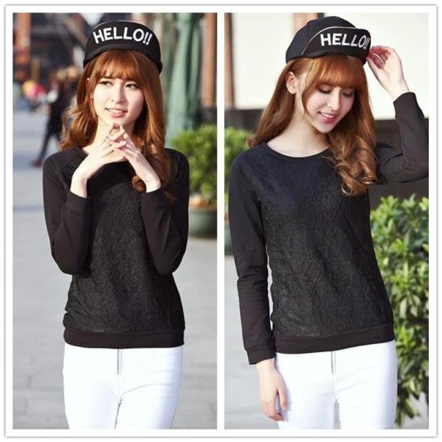 T2015新款蕾絲提花打底衫女圓領T恤長袖上衣潮體恤 /