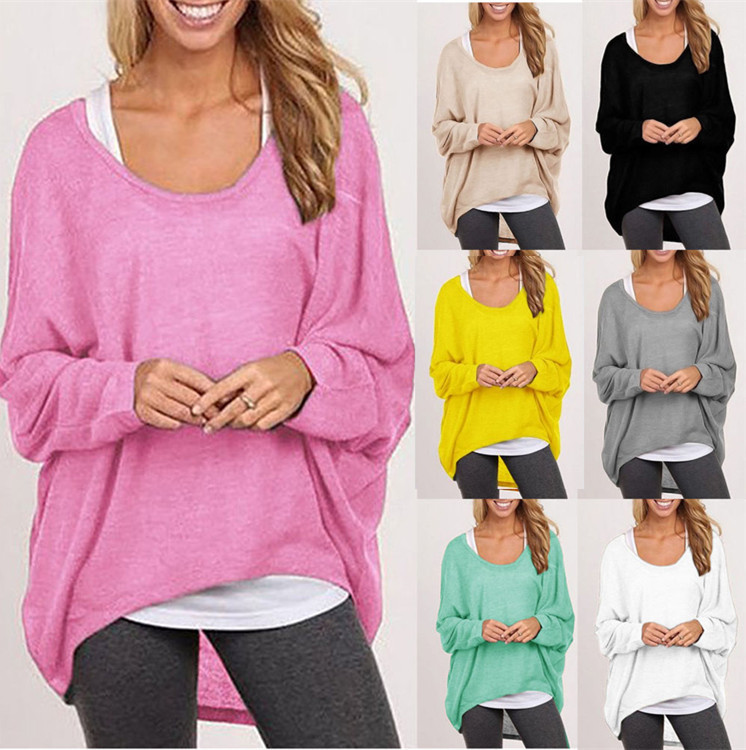 Ebay速賣通歐美爆款 寬松女裝不規則T恤多色外貿針織衫上衣 /