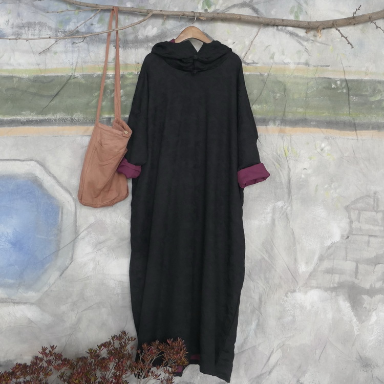 liwai原創冬款民族風大衣寬松大碼長款棉衣亞麻加厚精靈帽女巫衣 /