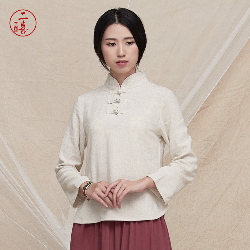 二喜棉麻茶人服秋冬 日常漢服改良旗袍上衣長袖 中國風(fēng)中式上衣女 /