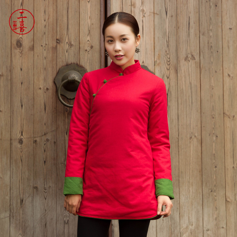 貳喜唐裝棉襖女民族風(fēng)棉衣棉麻冬外套中式旗袍棉襖修身中長夾棉袍 /