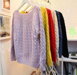 2014秋冬韓版毛衣女 寬松套頭打底麻花圓領(lǐng)長袖外套針織衫女批發(fā) /