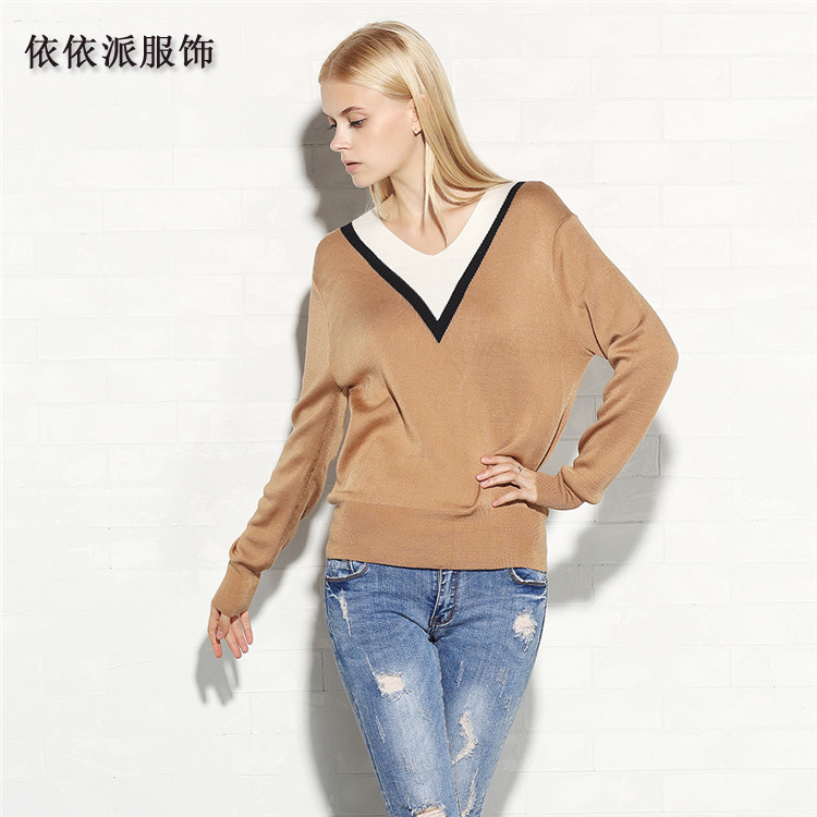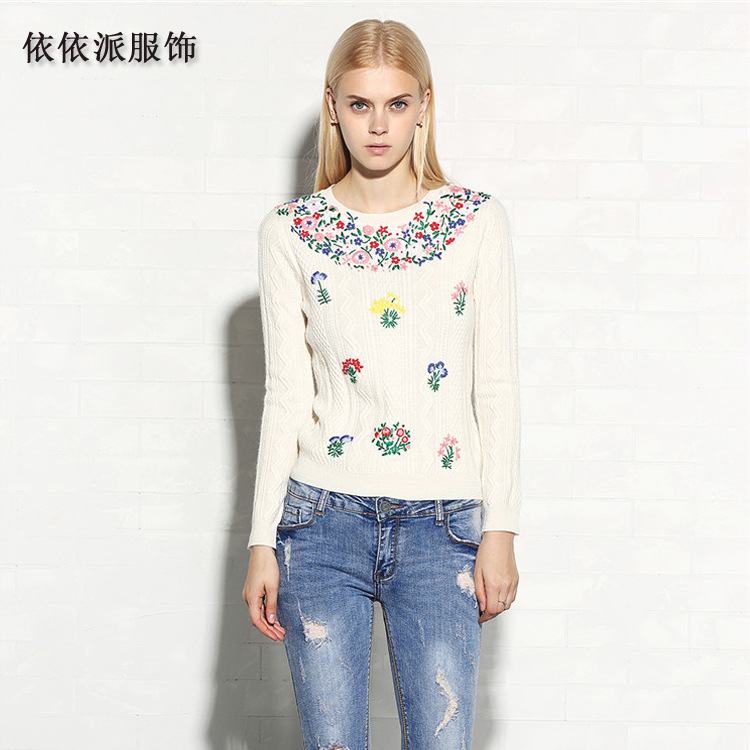 歐美2015早秋冬新品盤花繡花修身針織刺繡長(zhǎng)袖羊毛時(shí)尚套頭毛衣女 /
