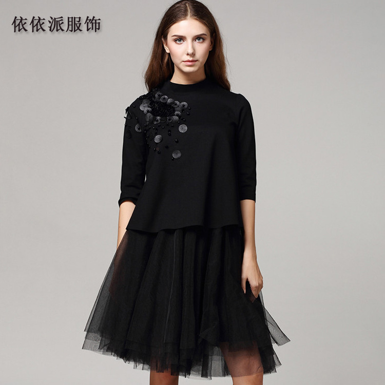 2015春秋新款黑色百搭超大擺傘裙時(shí)尚收腰半身裙中長(zhǎng)款裙a字半裙 /