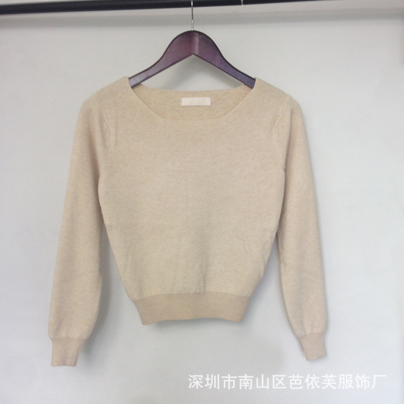 秋冬新款韓版一字領短款針織衫長袖修身毛衣套頭打底衫女批發 /