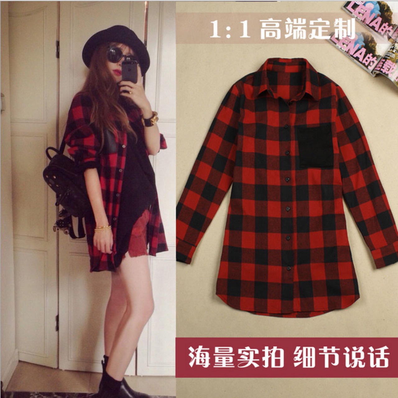 小辣椒格子加絨襯衫女純棉經(jīng)典紅色格子寬松襯衫長袖打底襯衣1022 /