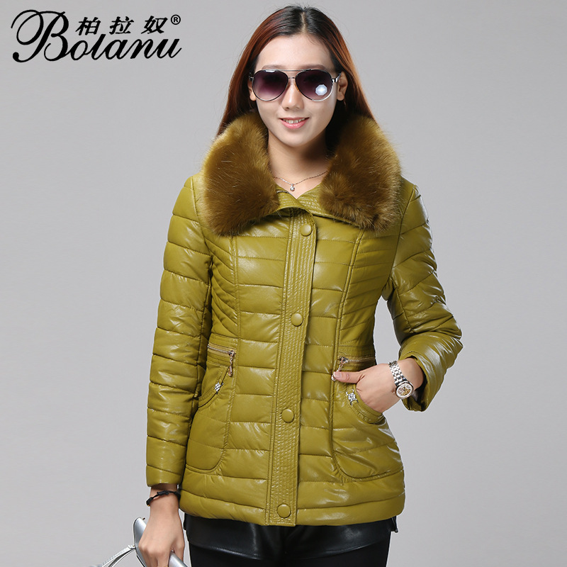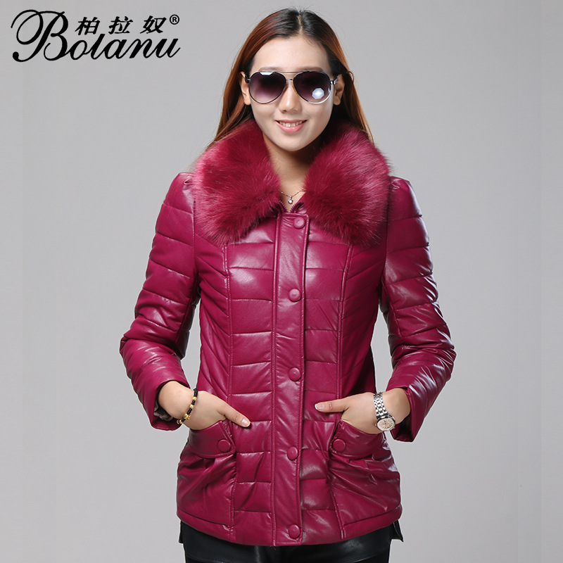 中老年女士PU皮棉襖 2015秋冬新款狐貍毛領媽媽裝修身外套女批發 /