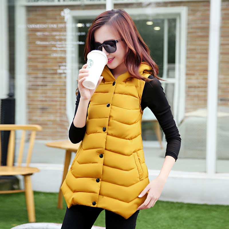 實拍2015韓版修身馬甲羽絨棉服女中長款外套棉衣連帽馬夾女 /