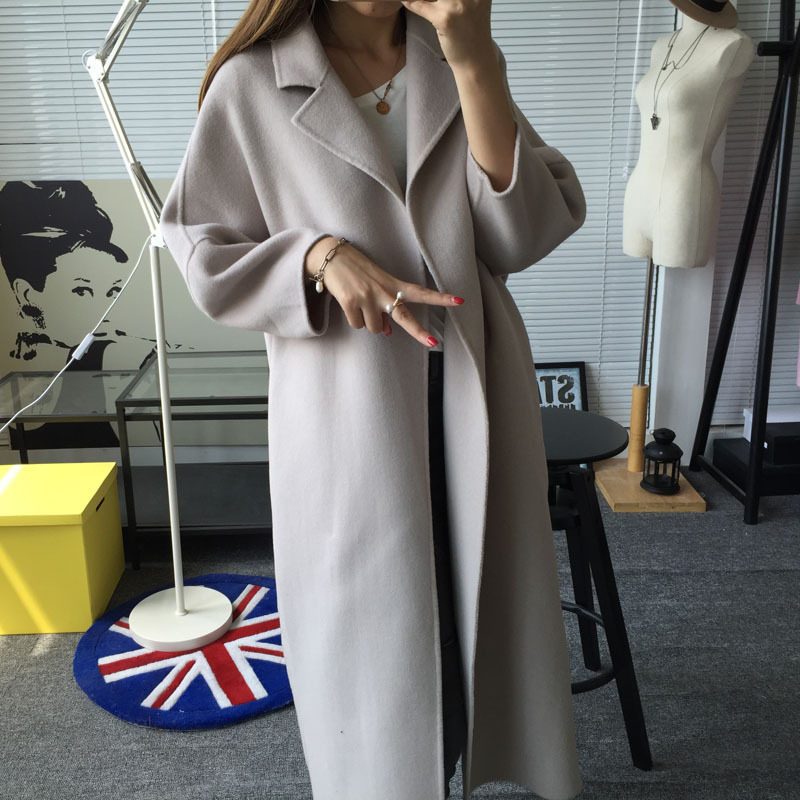 2015秋冬新款女裝羊毛雙面呢時尚毛呢外套繭型顯瘦中長款呢子大衣 /