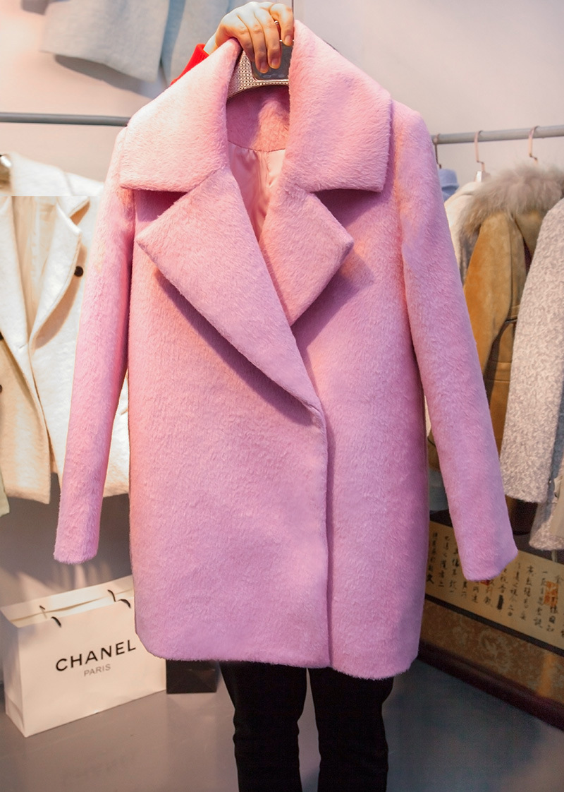 毛呢外套女2015秋冬新款韓版中長款呢子粉色毛呢大衣潮 /