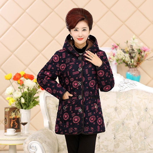 2015中老年女裝秋冬裝加絨加厚保暖棉衣40-50歲中長款媽媽裝外套 /