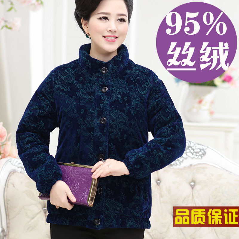 絲絨棉衣2015新款媽媽裝 中老年人印花加厚保暖棉服 廠家批發(fā) /