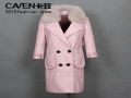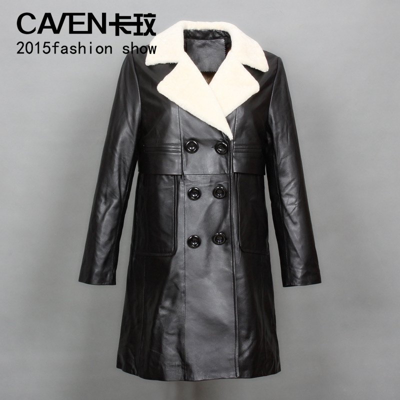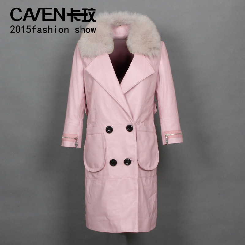 歐洲站2015秋冬新款真皮皮衣女中長款狐貍毛領綿羊皮加棉款雙排扣 /