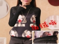 韓版2015新款冬裝女裝娃娃領印花加絨套頭打底毛衣假二件 /