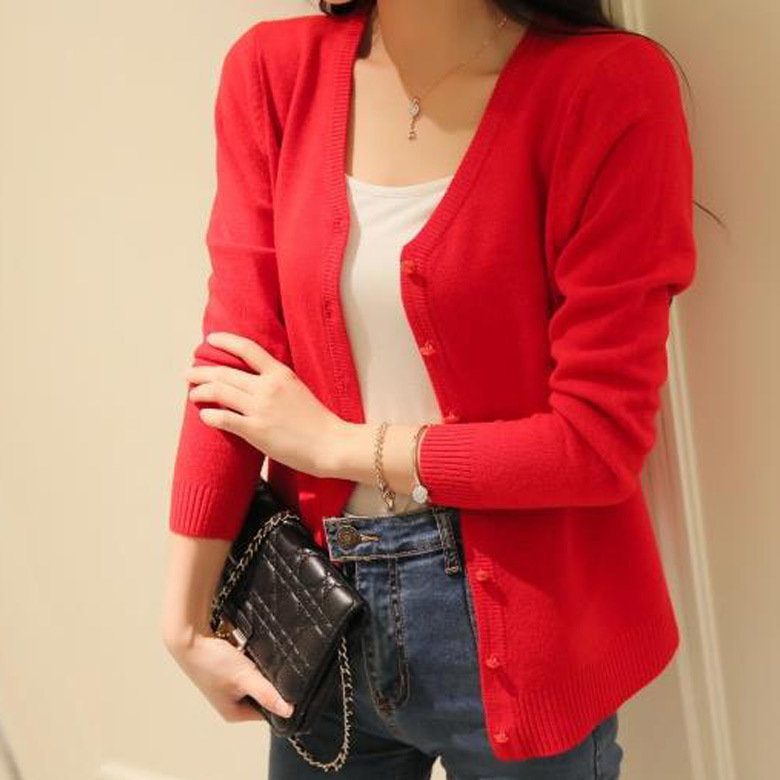 emoda韓版春秋新款V領修身百搭女裝針織衫毛衣外套開衫空調衫披肩 /