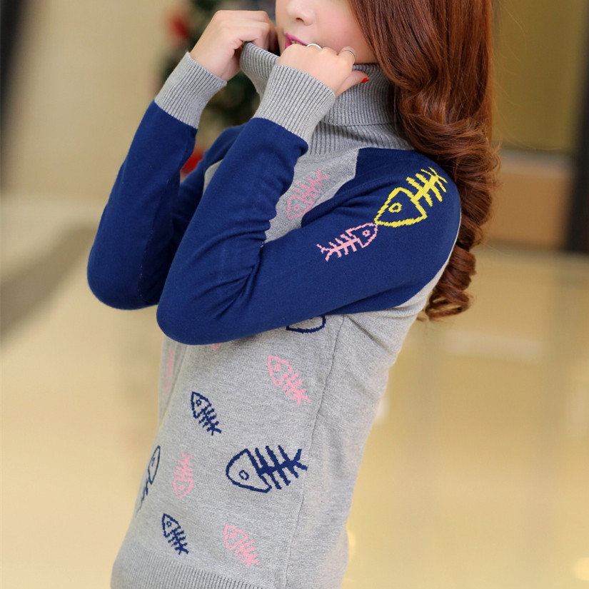 新款秋冬韓版純羊毛女套頭毛衣全羊毛提花魚骨高領長袖打底衫批發 /