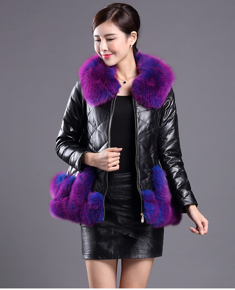 海寧2015秋冬新款真皮皮衣女士皮衣羽絨服外套狐貍毛領短款修身 /