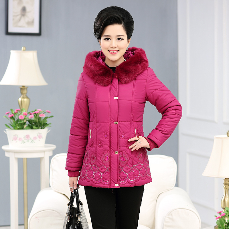 中老年冬季花案女士棉衣純色中長款棉衣 繡花棉衣 /