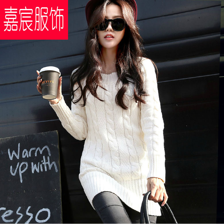 韓版2015秋裝新款女裝圓領純色麻花修身長袖毛衣 /