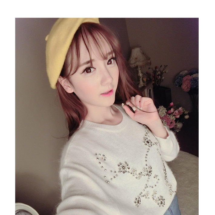 【嘉宸】2015秋季新款韓版圓領修身休閑長袖短款百搭釘珠寬松毛衣 /