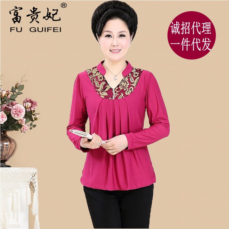 批發中老年女裝秋裝翻領大碼長袖T恤媽媽裝秋季新款打底上衣批發 /