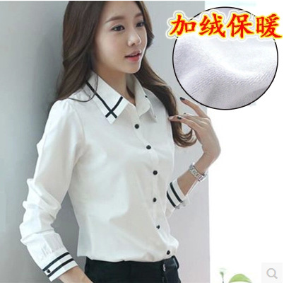 秋冬新款2015 韓版修身加絨襯衫女長袖職業保暖白襯衣加厚打底衫 /