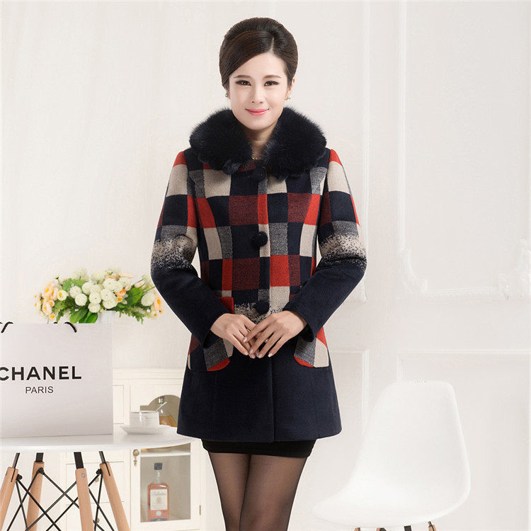 2014新品中老年羊絨格子大衣女裝毛領(lǐng)中年媽媽裝秋冬羊毛毛呢外套 /