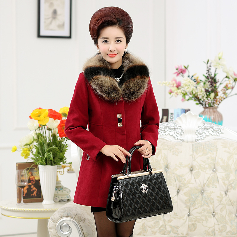 廠家直銷 2015新款時尚中老年女裝毛呢外套 媽媽裝毛呢大衣 /