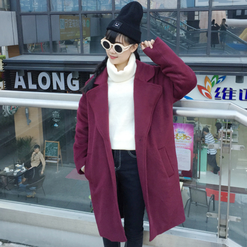 實拍圖女裝復古寬松廓形呢大衣長款毛呢外套女1615 /