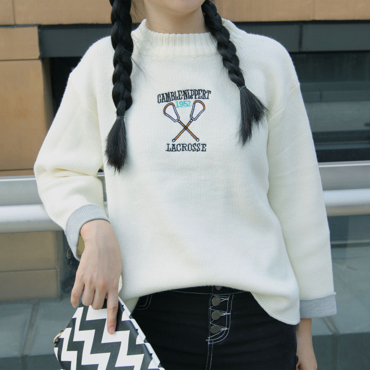 實拍圖甜美刺繡打底衫女裝新款針織衫字母圖案毛衣1595 /